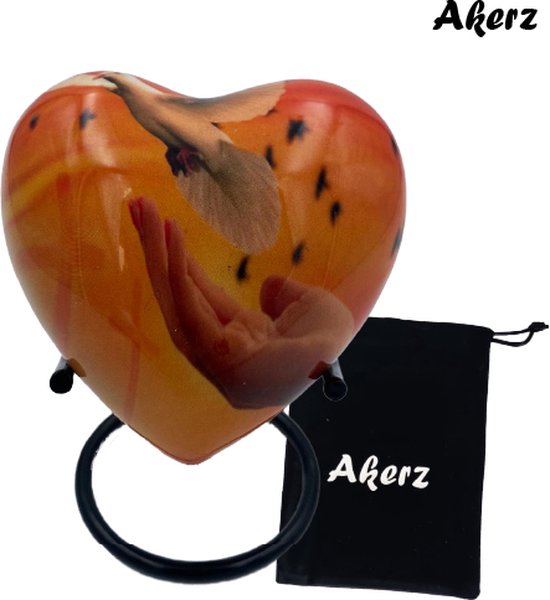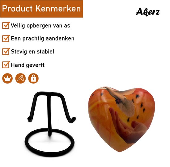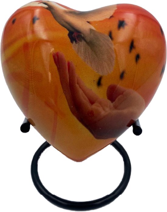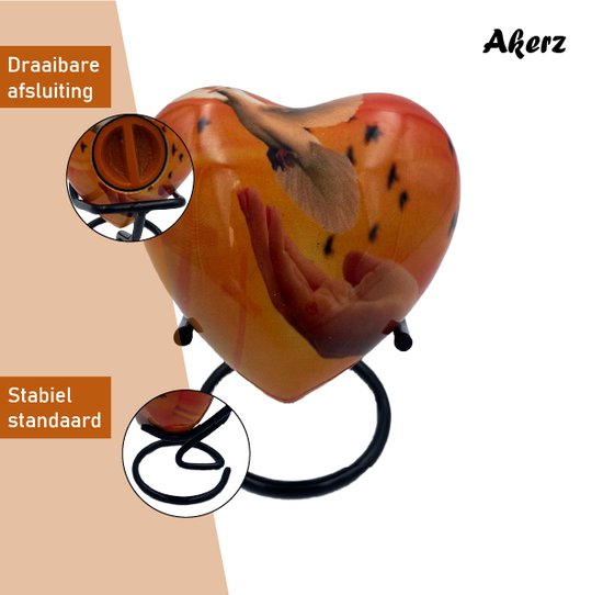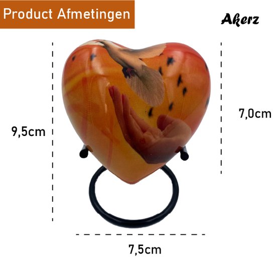 Akerz Mini Urn - oranje / duif - Hart - Aluminium - Inclusief Standaard - Graveerbaar - 80ml
