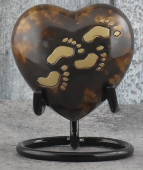 Op zoek naar een prachtige manier om een geliefde te herdenken? Dan is deze Mini urn met voetstappen design in een warme bruine kleur de perfecte keuze. Compleet met een elegante zwarte standaard, zal deze urn een mooie en respectvolle toevoeging zijn aan elke ruimte. Laat de voetstappen van je dierbare voor altijd in je hart achter met deze unieke urn.